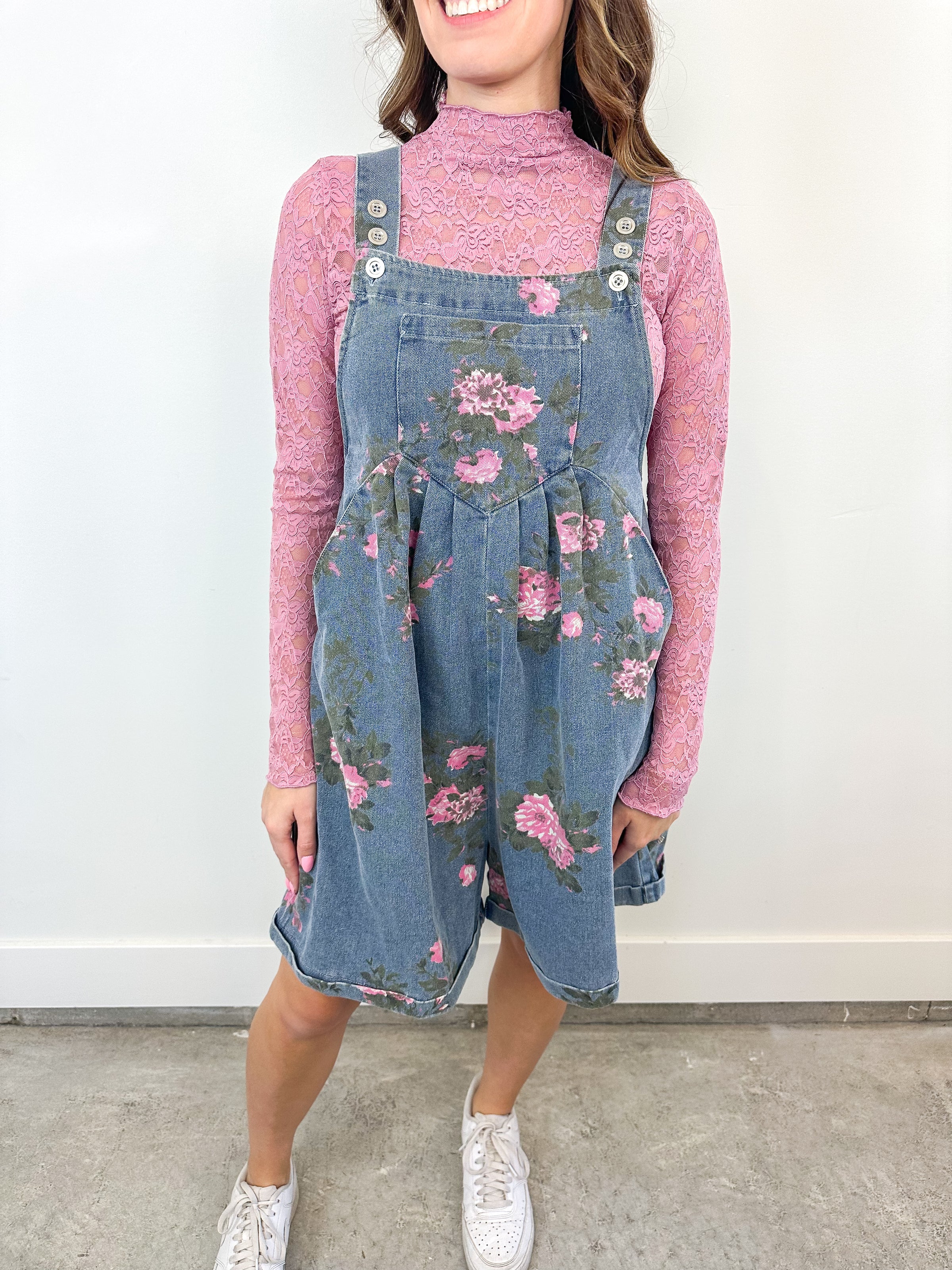 This is one of those layering pieces you’ll reach for constantly. The lace detail adds a pretty, feminine touch and makes even simple outfits feel more styled. It works especially well layered under sweaters, vests, rompers, or overalls when you want a little texture showing through.